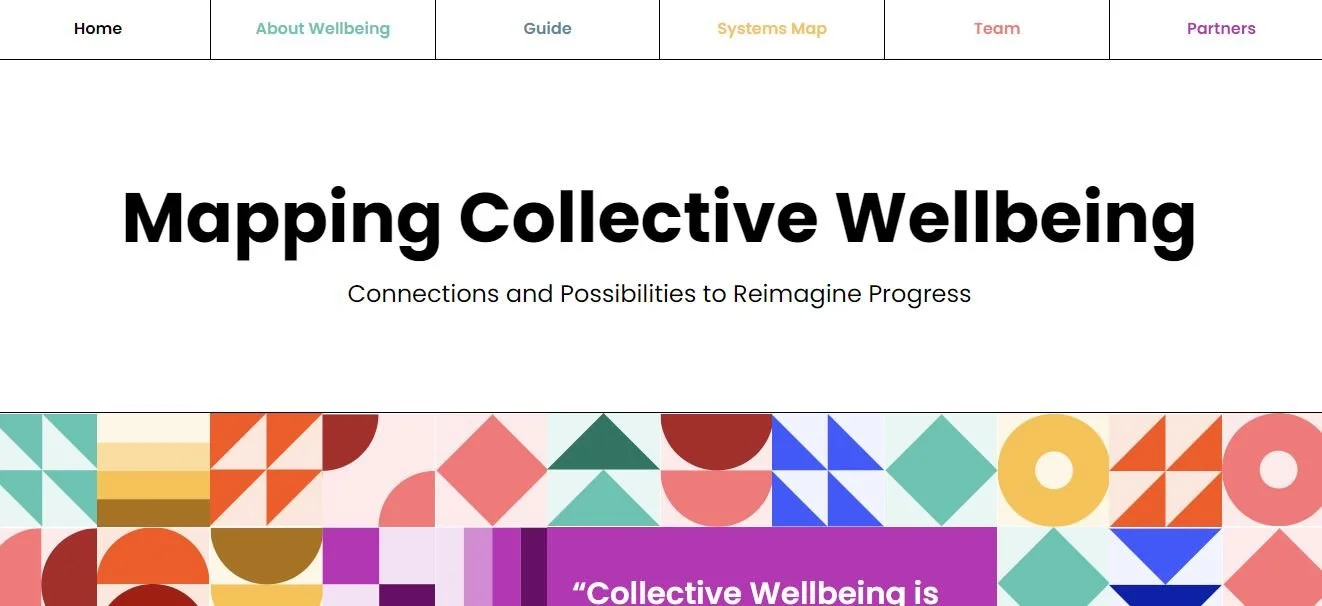 Putting our tools to use, we recently completed a study with our colleagues at Civic Wellbeing Partners that mapped connections between individuals and organizations across sectors - and across the globe - that work to address collective wellbeing in various ways. The Mapping Collective Wellbeing site is intended to spark conversation, raise awareness of shared issues within the wellbeing system, and advance opportunities for a path forward. The interconnected web of themes, relationships, and learnings found on the site emerged from a process of 80 stakeholder interviews and a review of hundreds of resources and organizations.