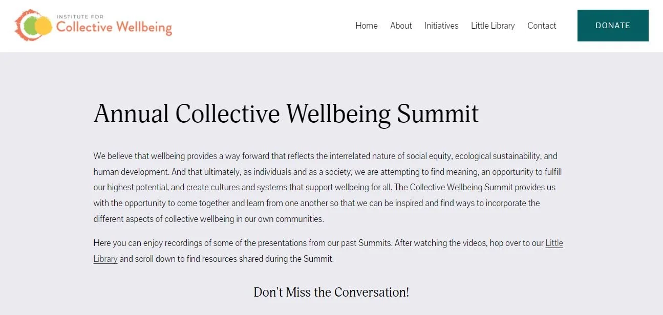 In turn, education supports us to live the question: “What would it look like - and how would it feel - to center wellbeing in everything we do, and all that we are?” Through our annual Collective Wellbeing Summit and other ongoing virtual learning events, we welcome the international community of wellbeing stewards to participate in conversations around topics such as wellbeing economies, the intersection of racial equity and wellbeing, and wellbeing and business. By hosting educational offerings, we’re able to share findings from our research and practice and to learn from the experiences of others.